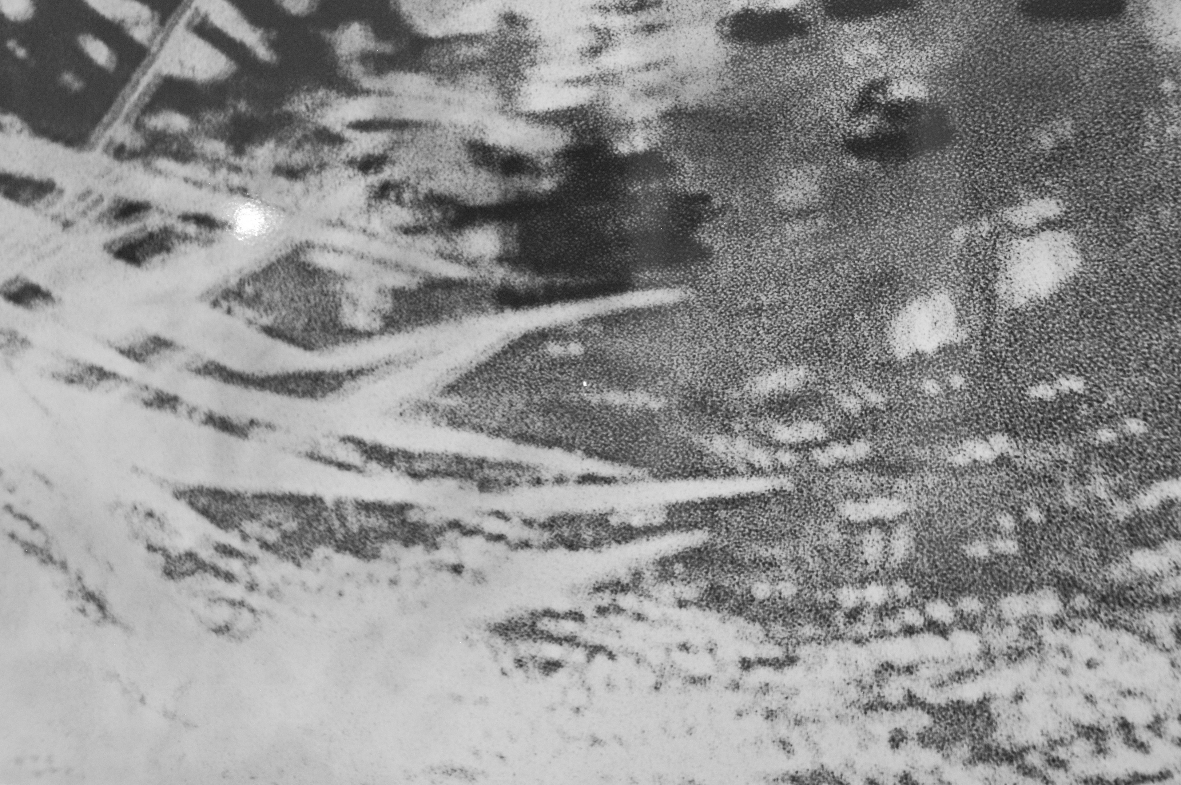 Enlarged photographs of stacked digitally re-printed negatives of 35mm, 120mm, and camcorder shot images. Caffenol developed, and mounted on 1/4” hardboard.