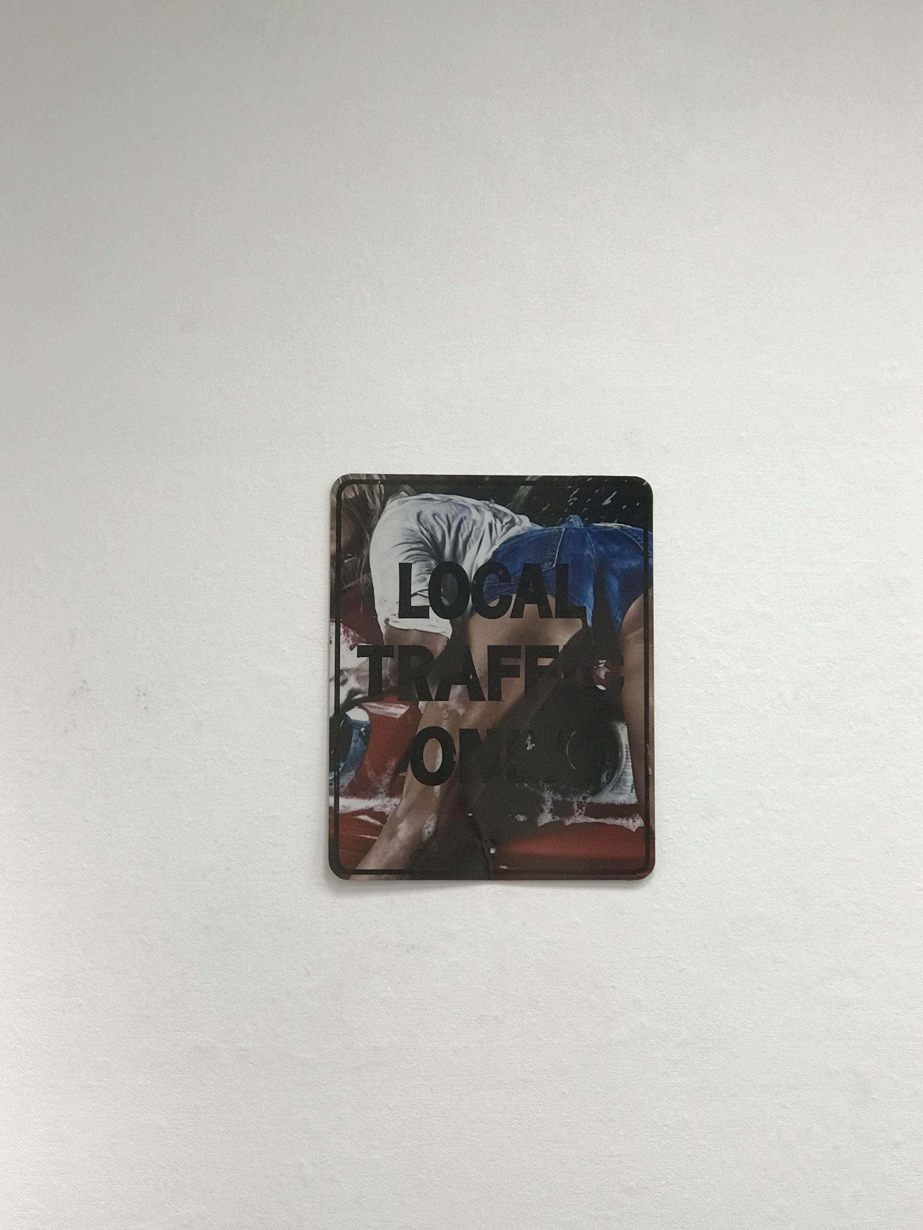 local traffic only, 2 ft x 2.5 ft, 2022, transparent image mounted on Canadian street sign